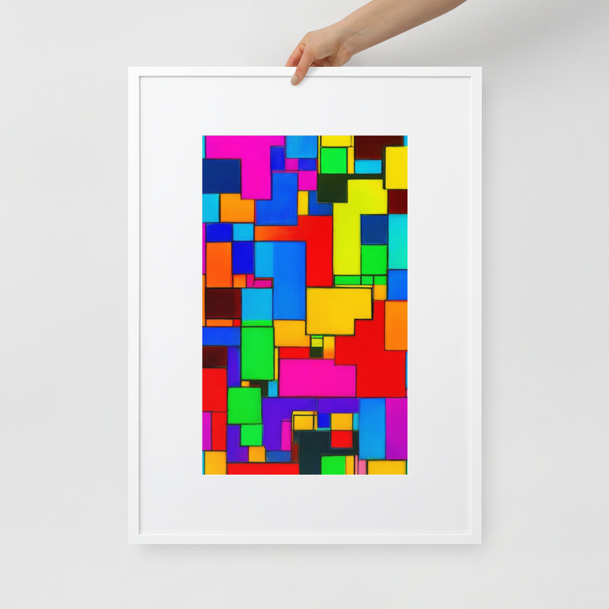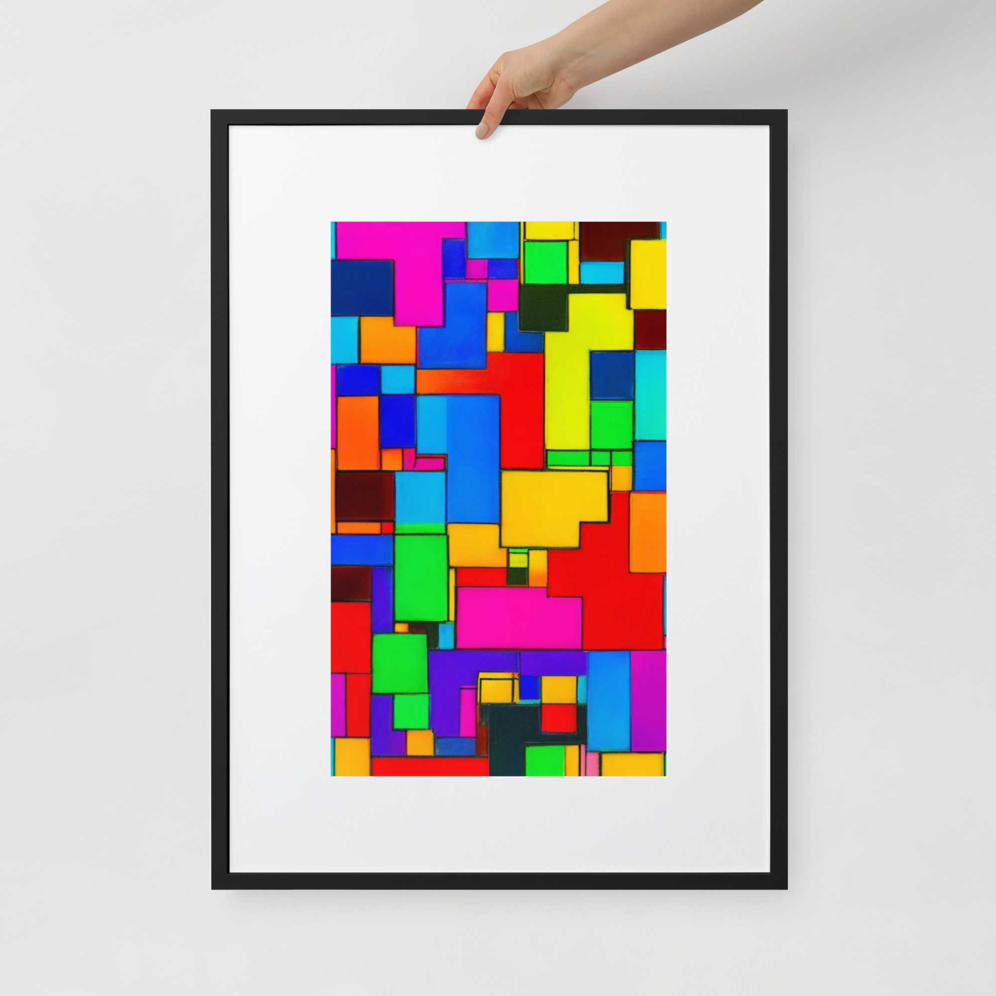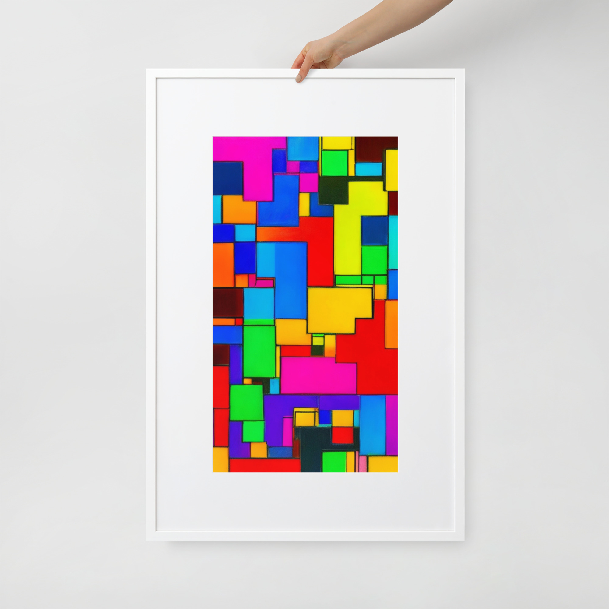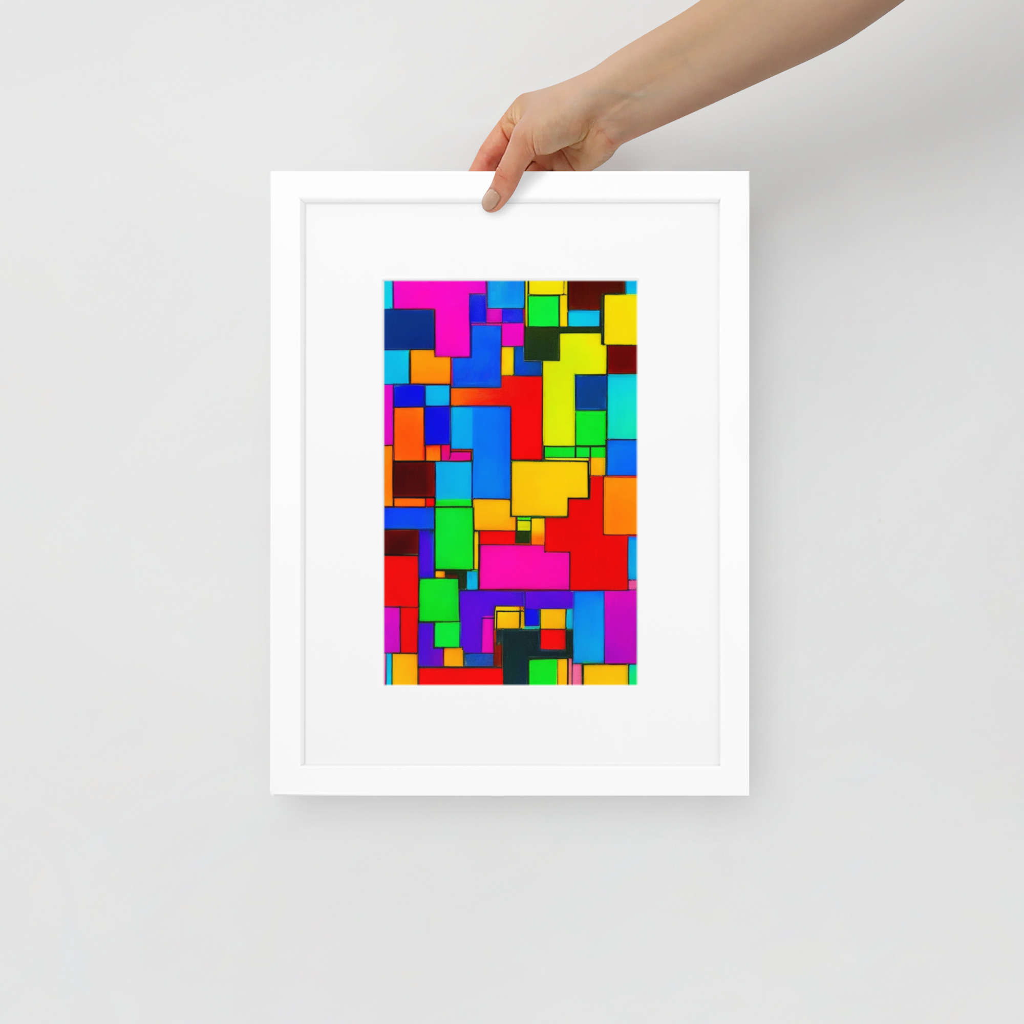 “Chromatic Convergence” is a modern abstract painting that draws inspiration from geometric abstraction, where structure meets the vibrant spontaneity of color. The artwork features an array of colored squares and rectangles that jostle for space within a tightly knit grid. Each shape is saturated with a deep, resonant hue — from electric blues and radiant yellows to hot pinks and lush greens — creating a visual feast that is both playful and thought-provoking. The meticulous placement of each block builds a sense of organized complexity, reflecting the interconnectedness of individual elements within a larger whole.