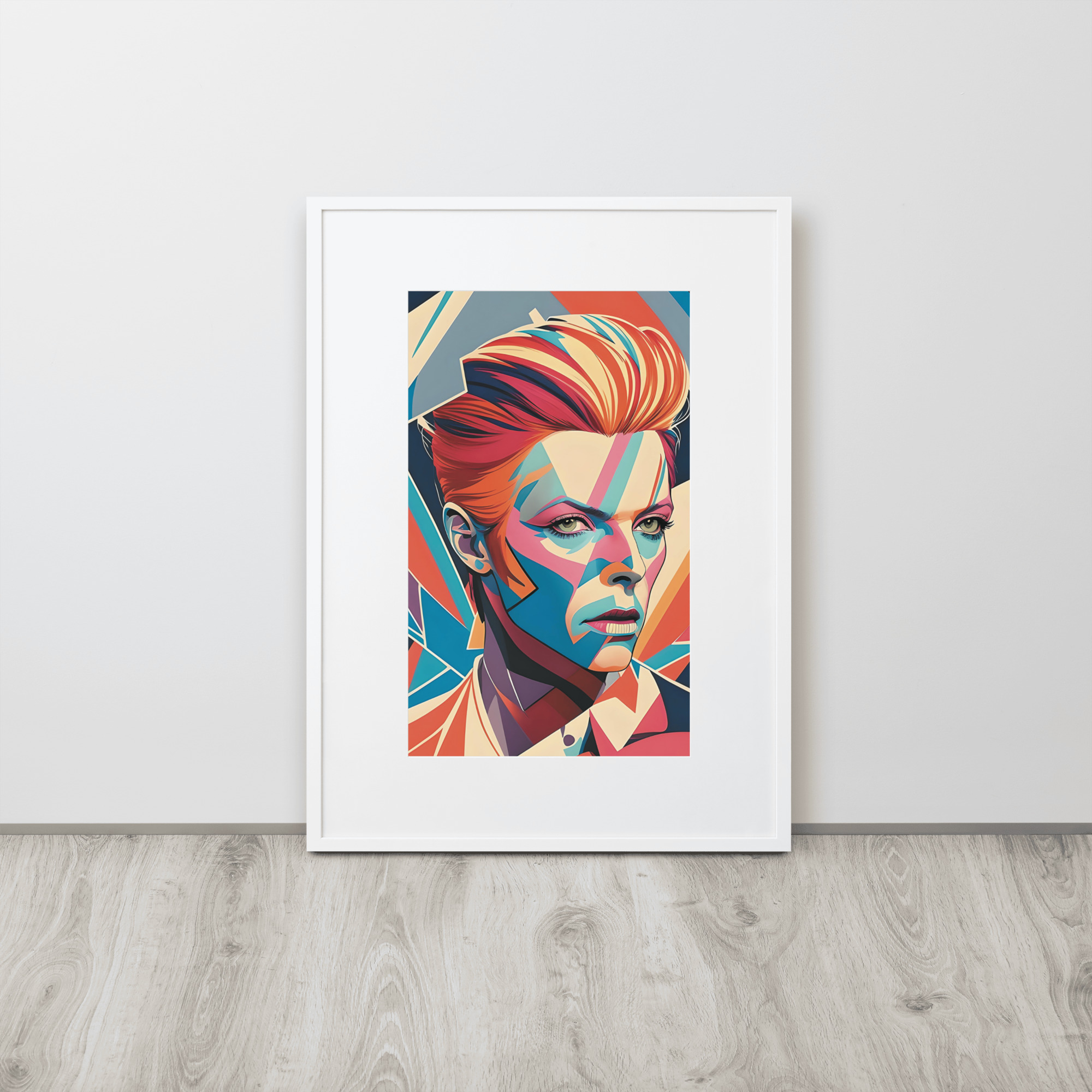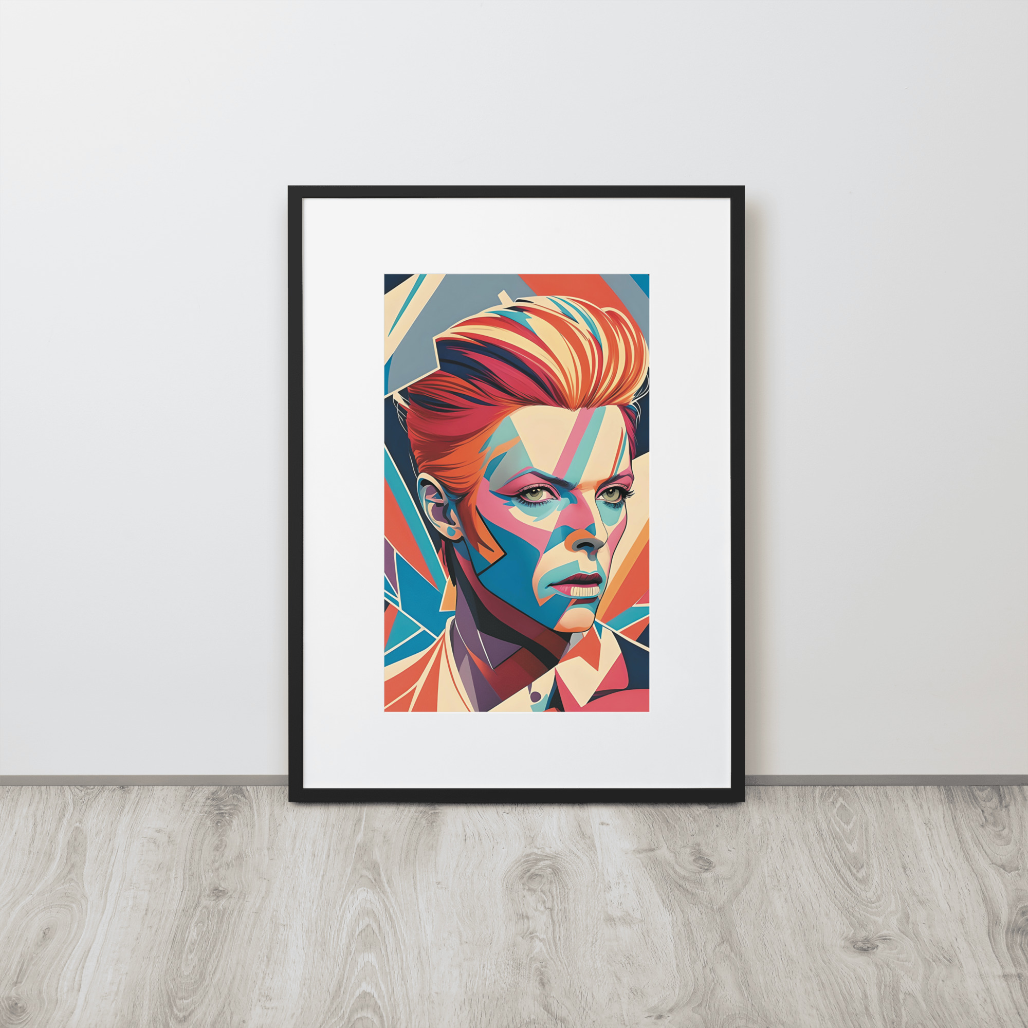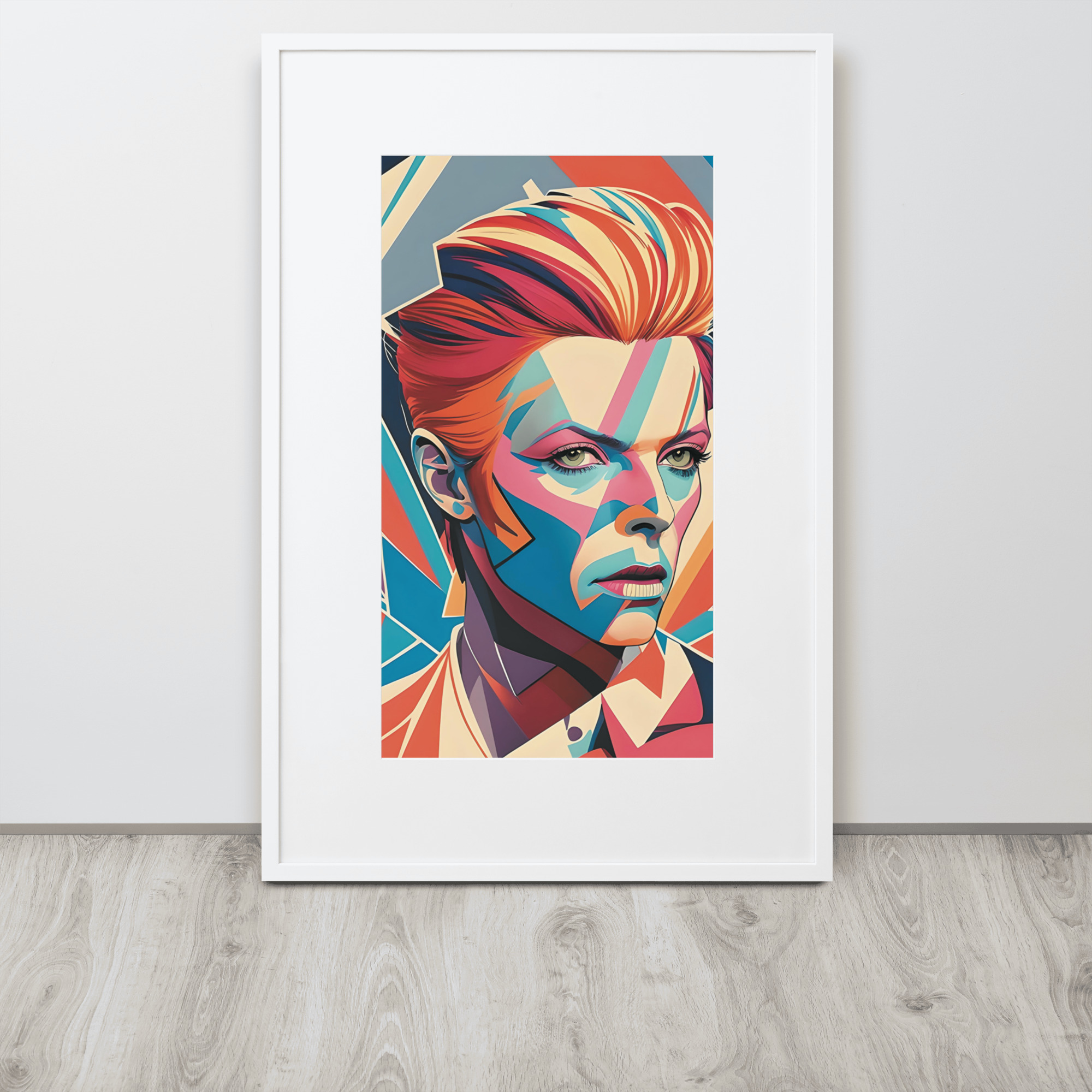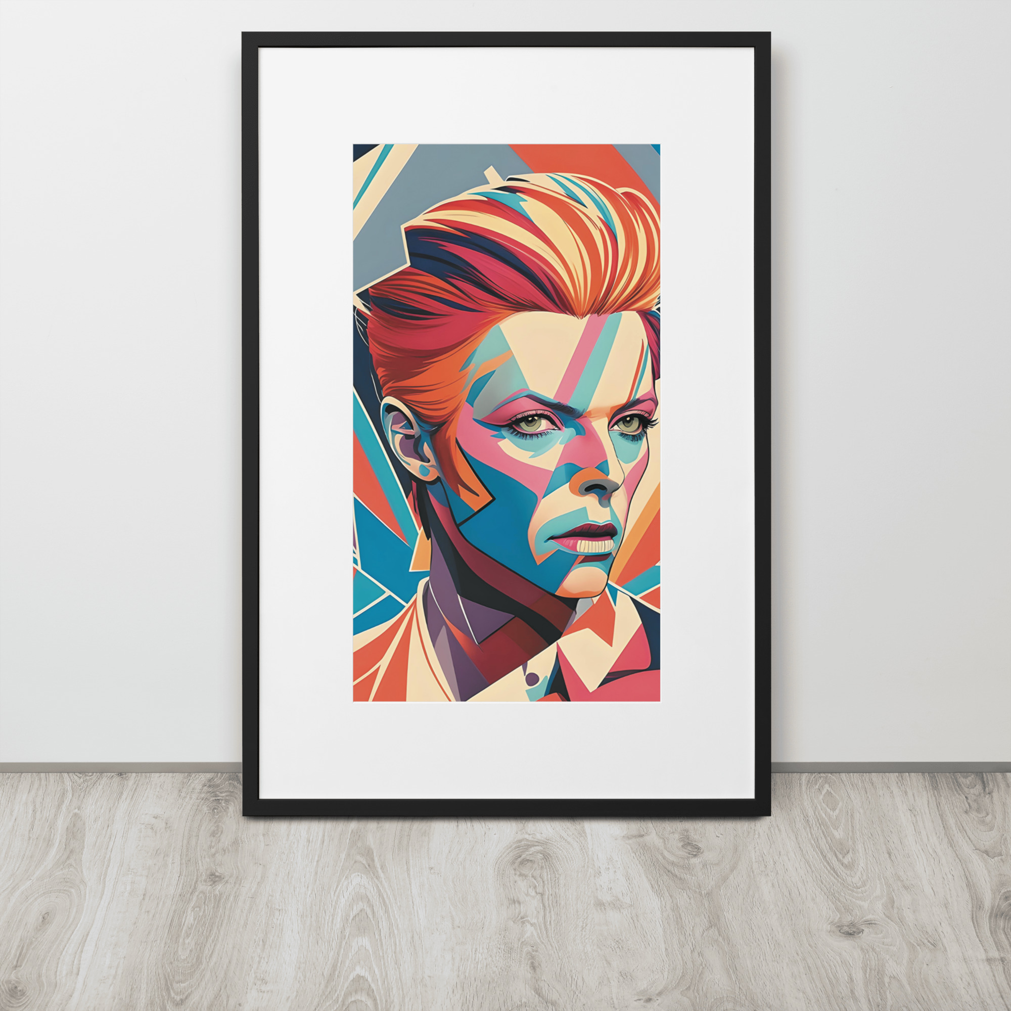 This artwork has a striking, angular portrayal with vibrant colors, evoking a sense of dynamic energy and complexity.