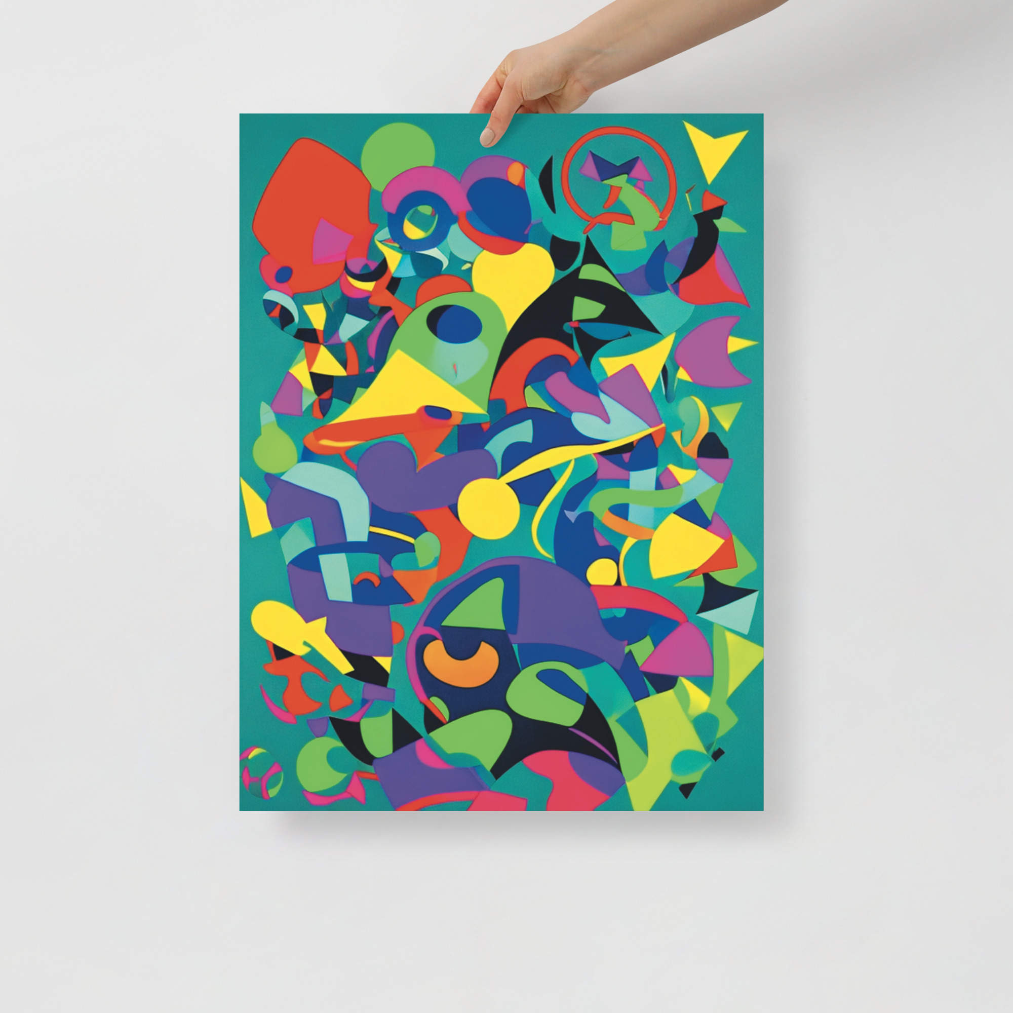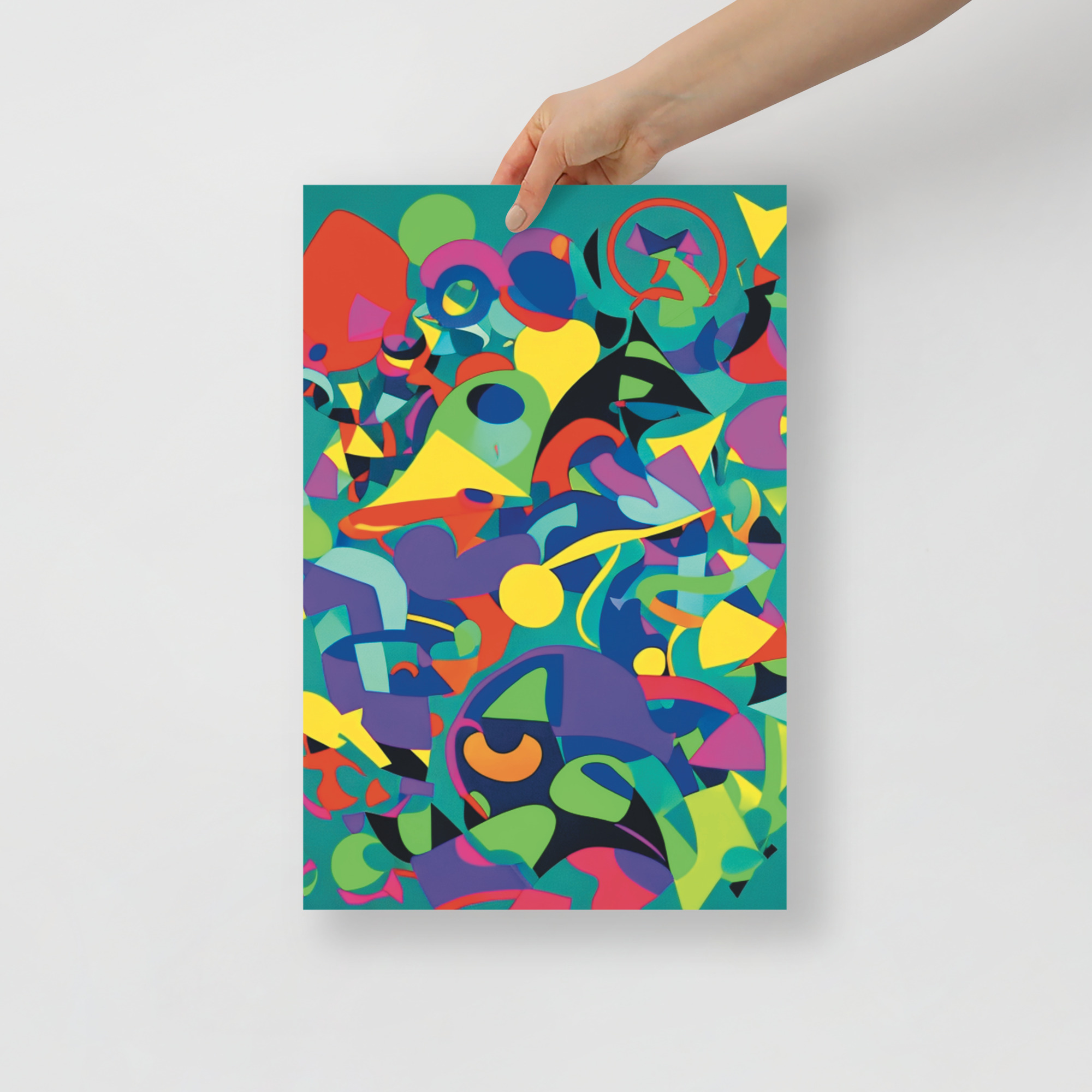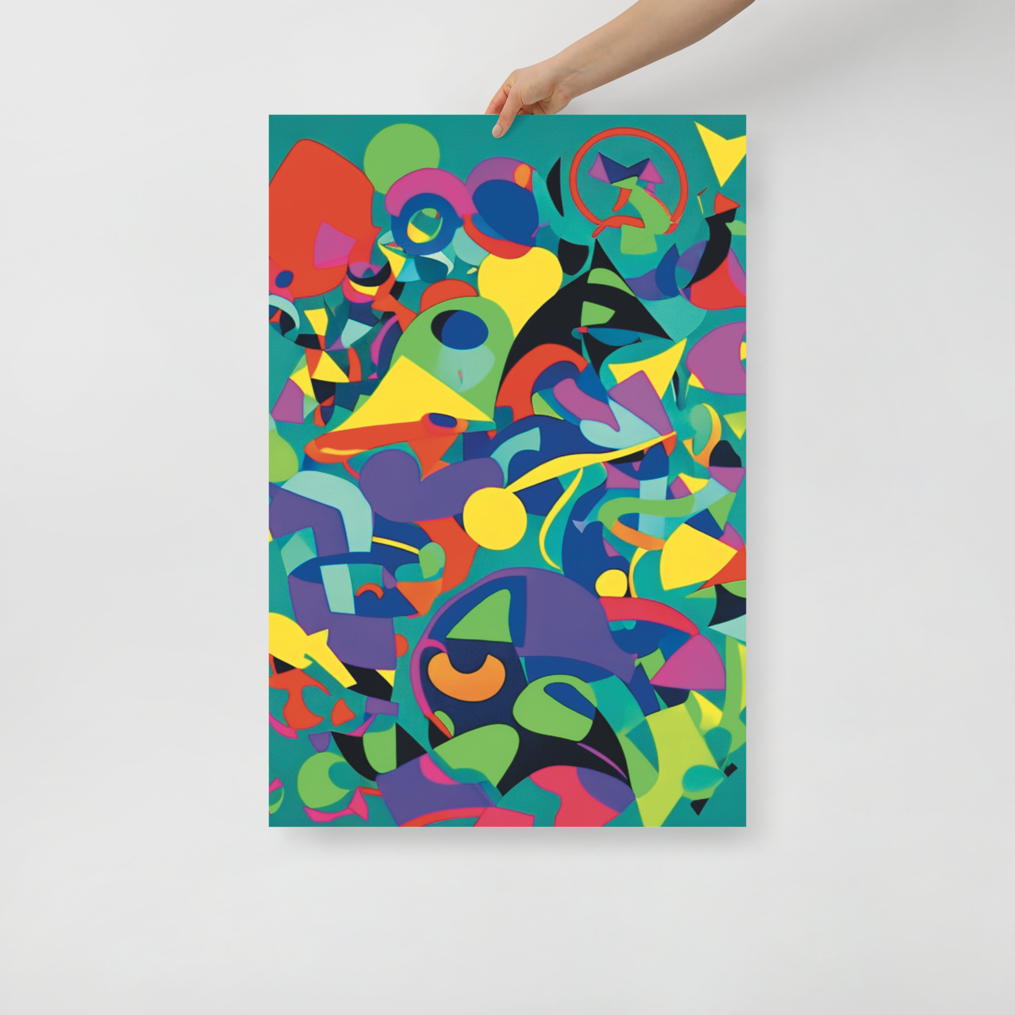 “Psychedelic Confetti” bursts with an exuberant array of shapes and colors, capturing the spirit of a vibrant celebration. The background’s electric green sets the stage for the splashes of neon pinks, blues, yellows, and reds, reminiscent of the psychedelic art of the 1960s. Abstract forms seem to float and fly like confetti in the air, suggesting movement and festivity. This painting is an homage to joy and the free-spiritedness of an era defined by its bold visual expressions.