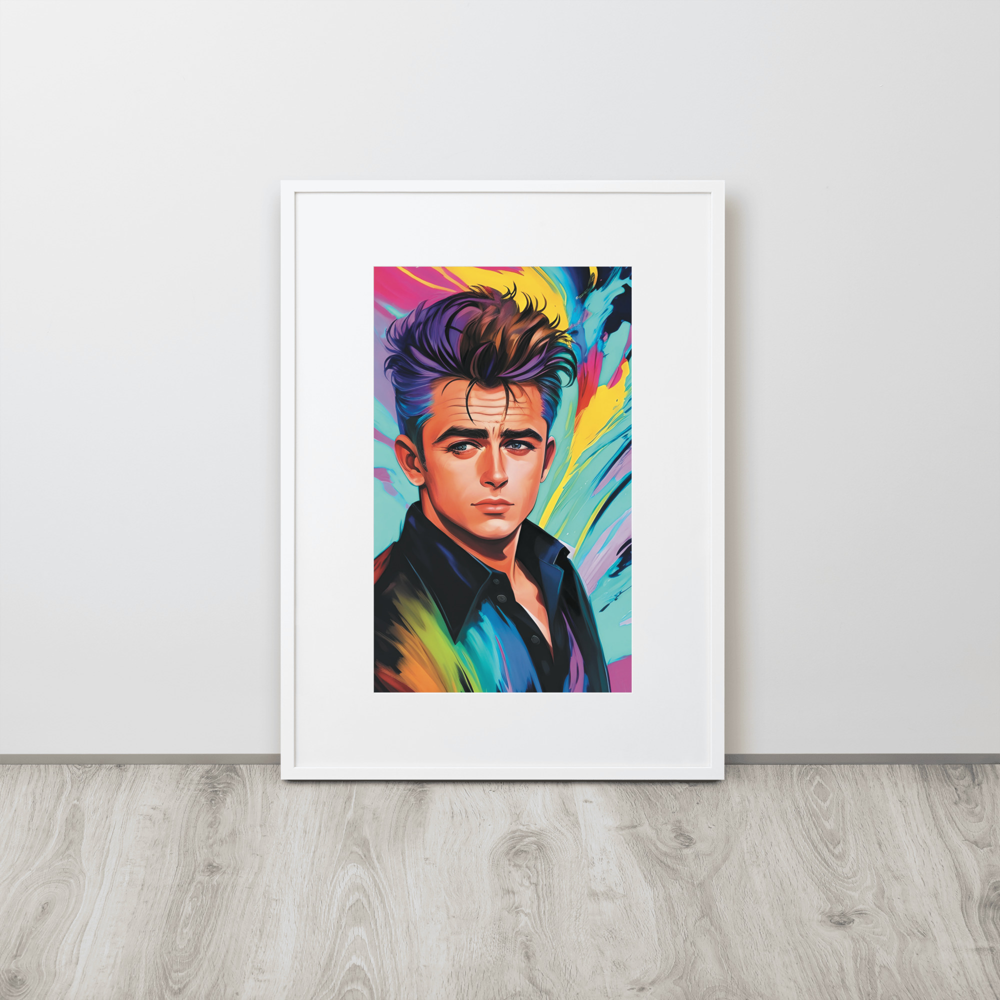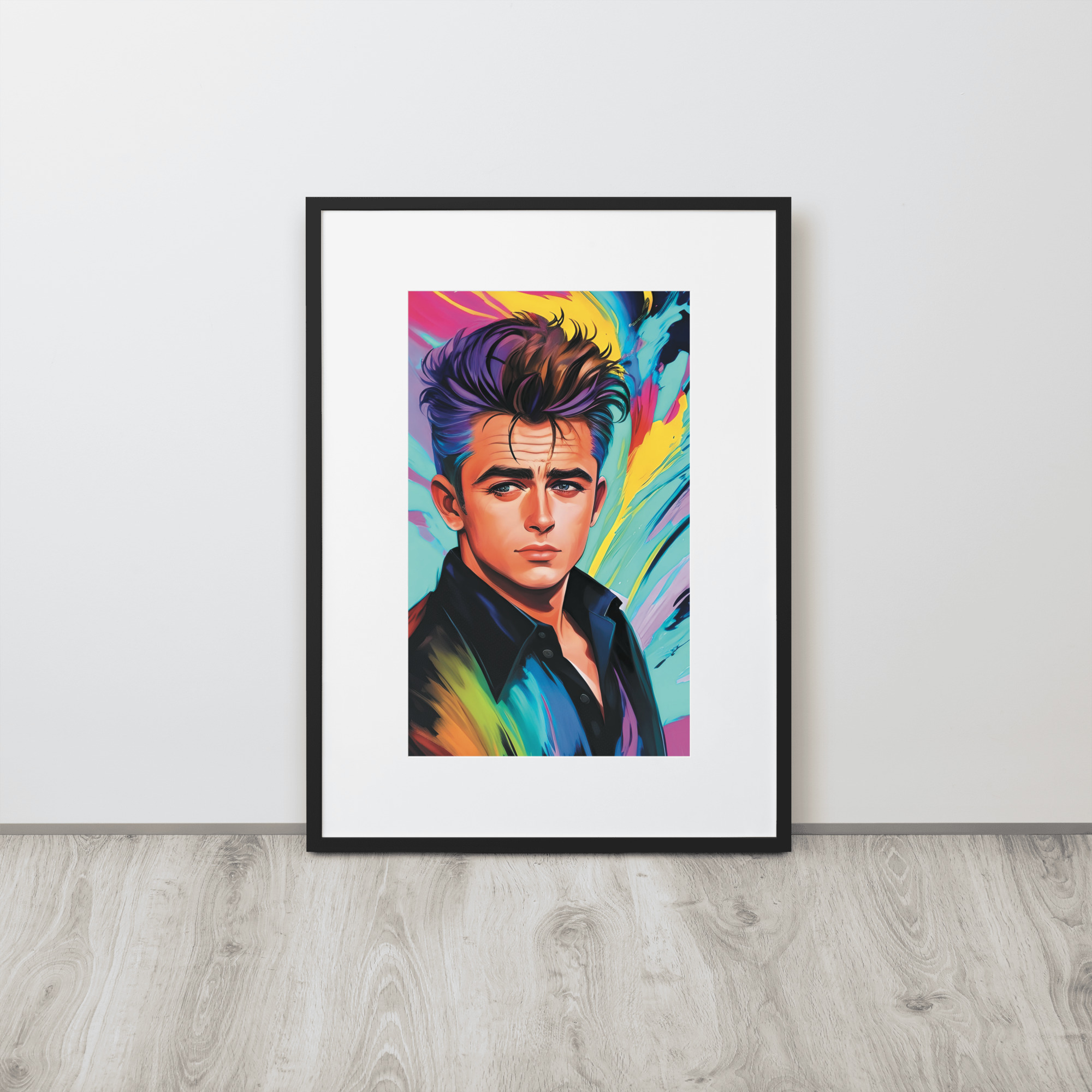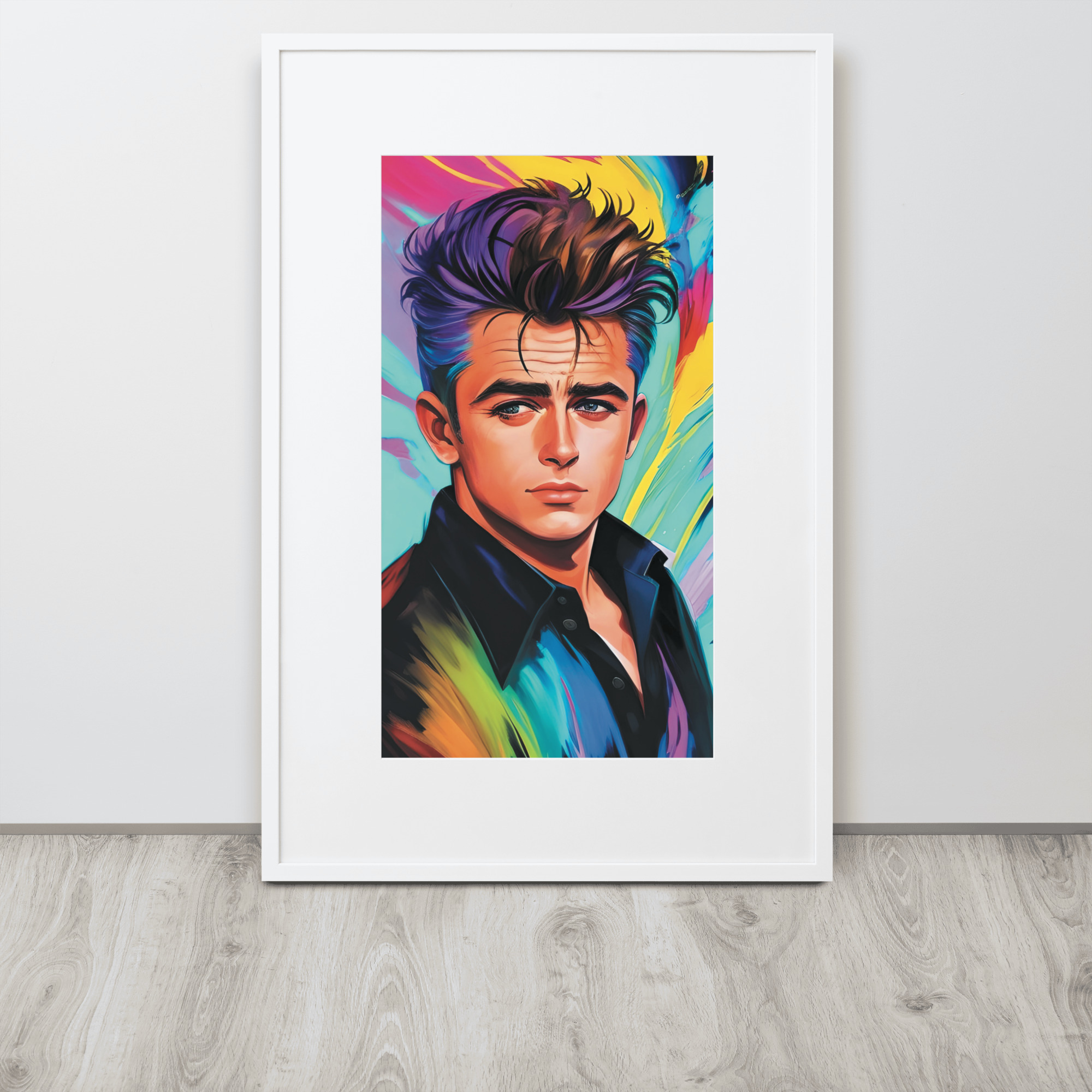 This piece captures a classic charisma with a modern, colorful twist, reflecting the iconic coolness of the figure infused with the bright, rebellious streaks of color.
