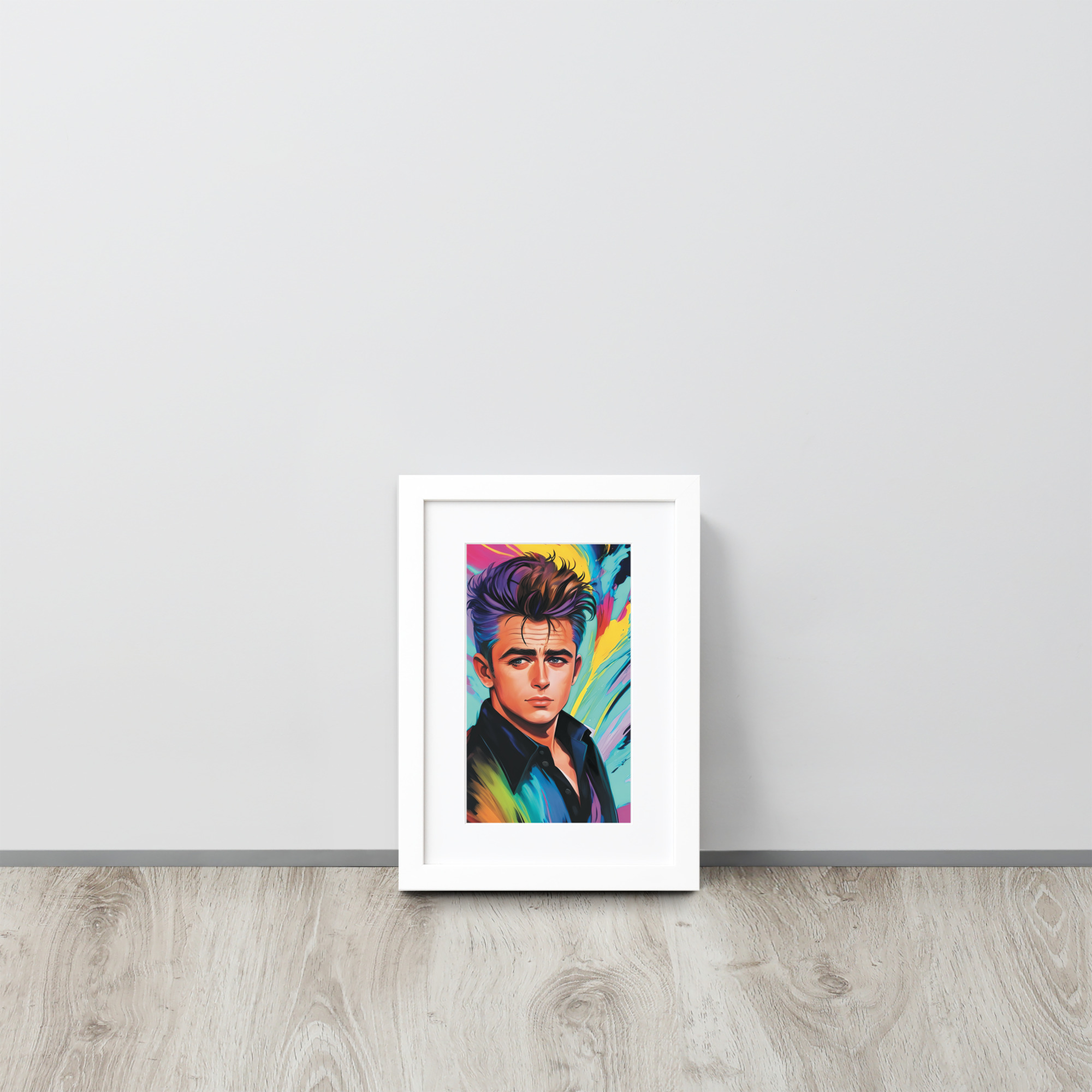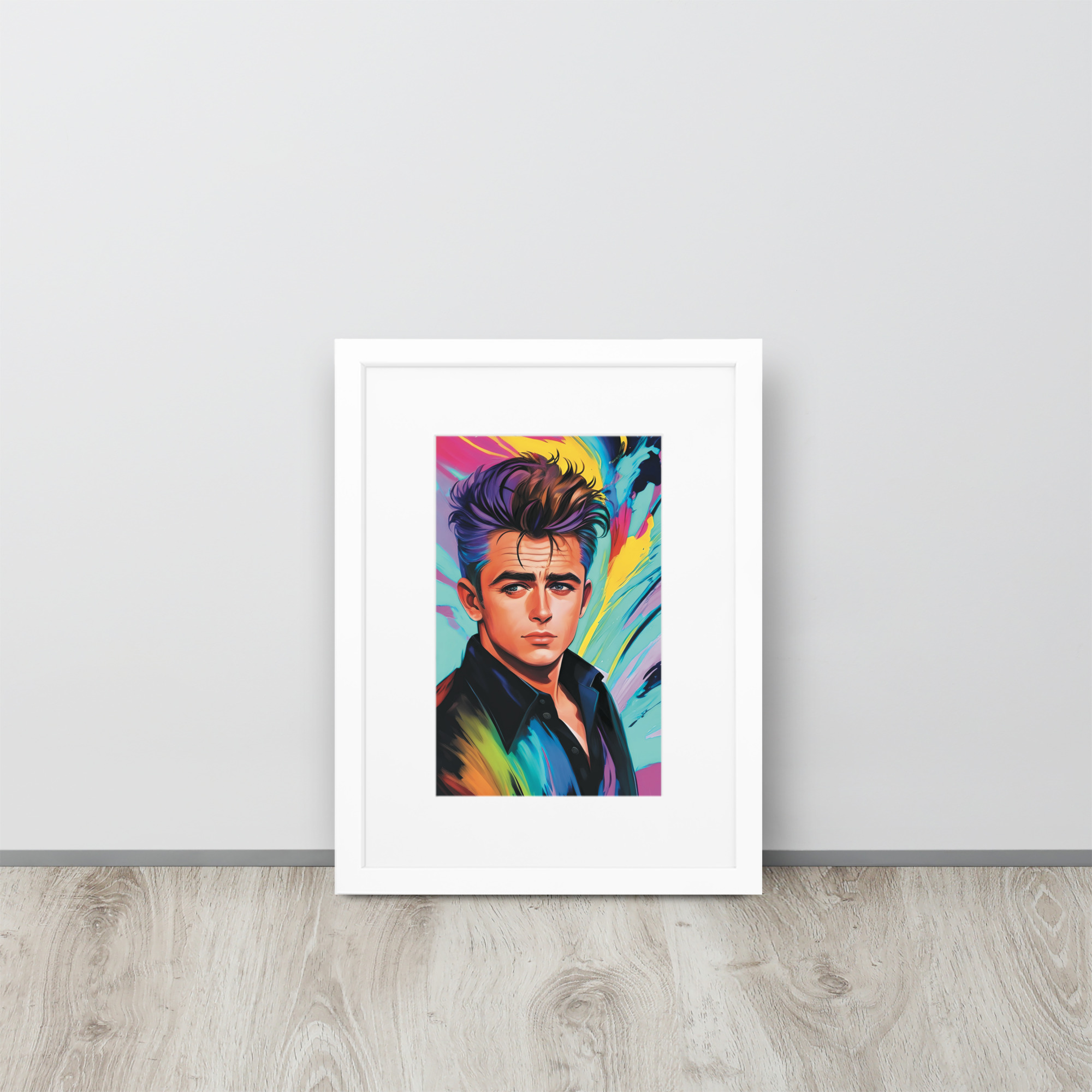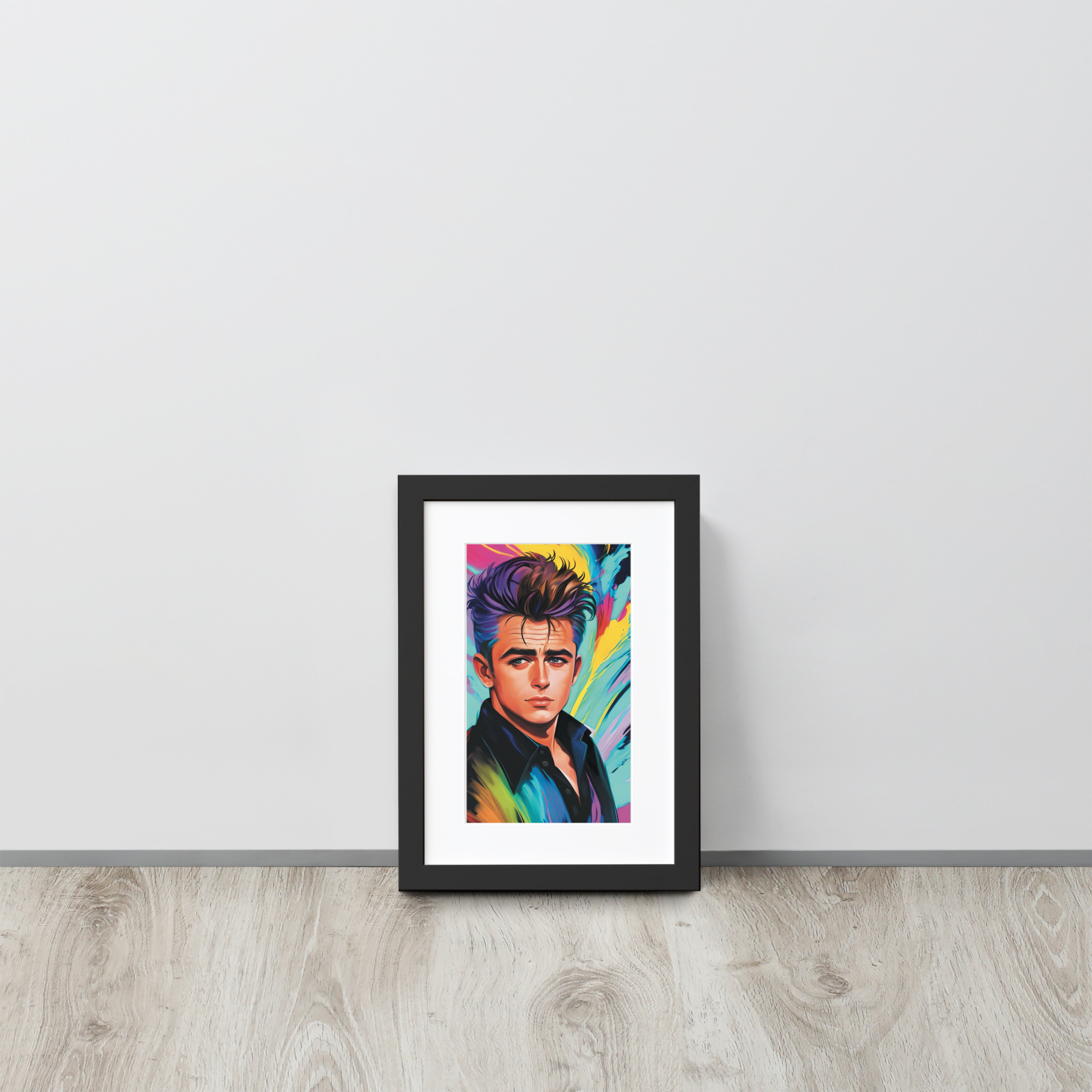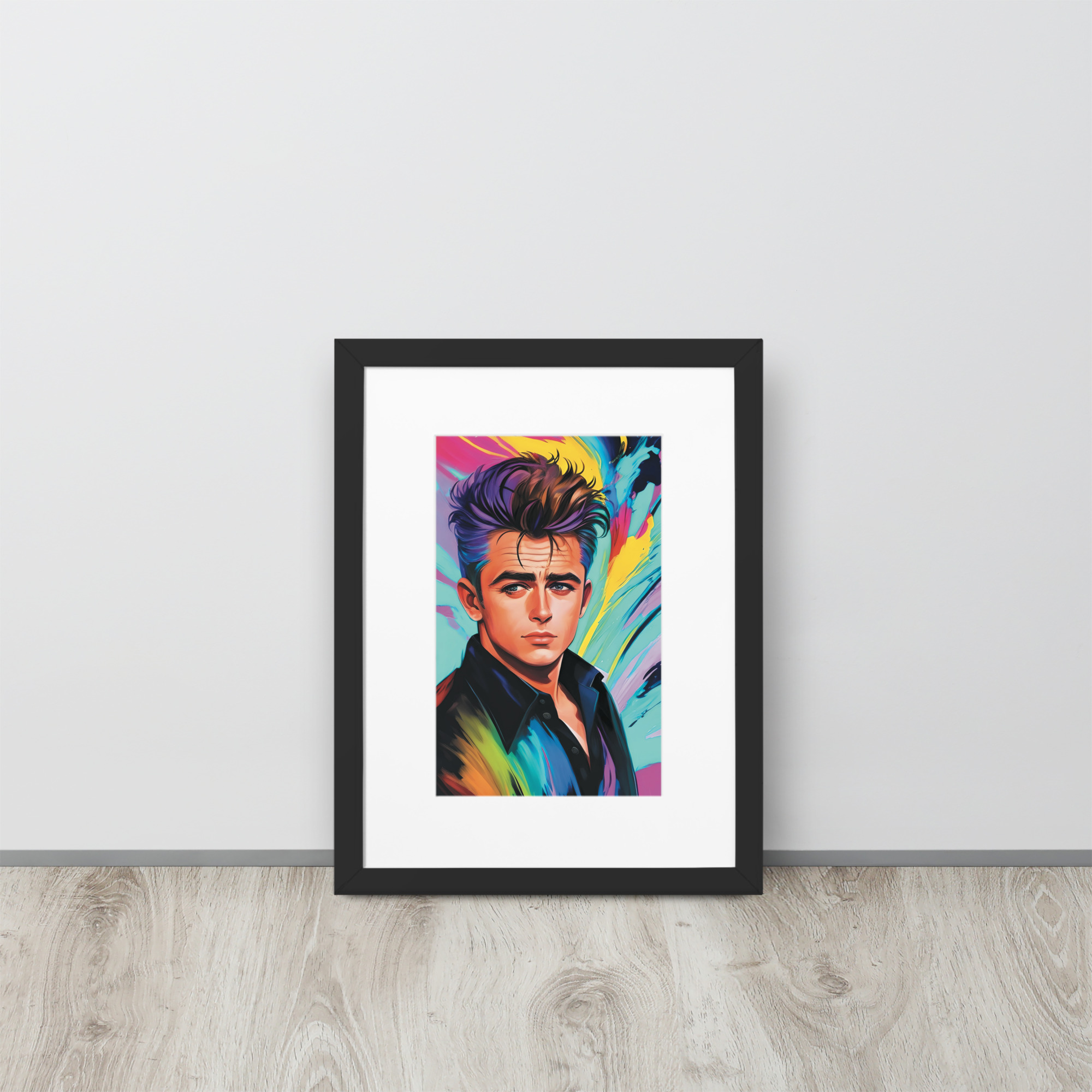 This piece captures a classic charisma with a modern, colorful twist, reflecting the iconic coolness of the figure infused with the bright, rebellious streaks of color.